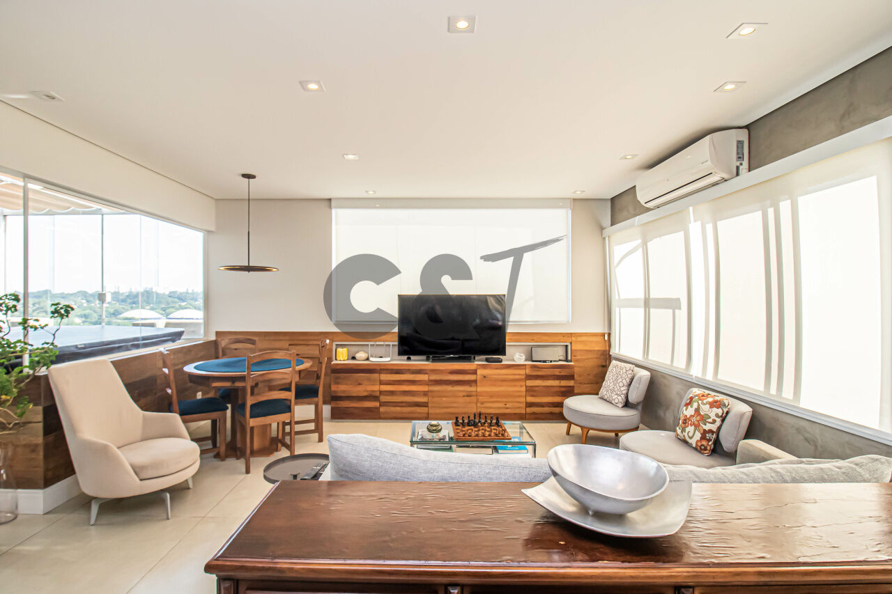 Ref. TI11023 Cobertura à venda no Alto da Boa Vista, com 250 m² Á.Ú., Reformado e Decorado ; Hall de entrada, Lavabo; 03 Suítes; Sala íntima ;Área de Serviço Cozinha de apoio no piso inferior; Área social no piso superior Living integrada à Cozinha Americana Terraço com vista livre - 180 graus para o Alto da Boa Vista, 02 vagas de garagem. Ar condicionado em todos os ambientes.
